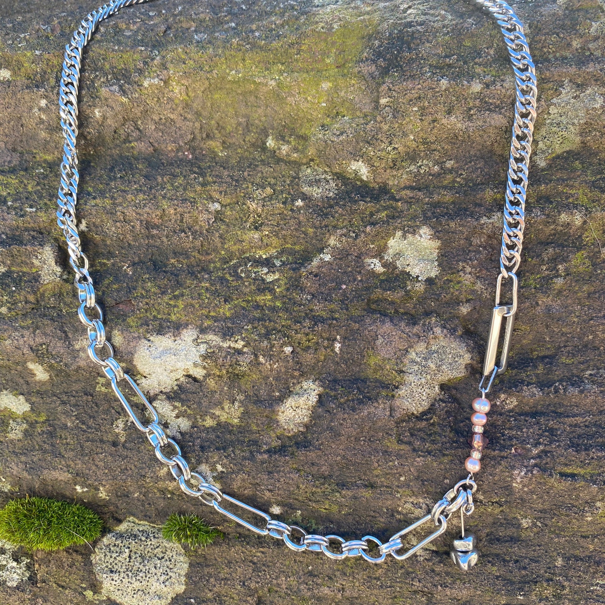 - pearl, glass and hematite beads